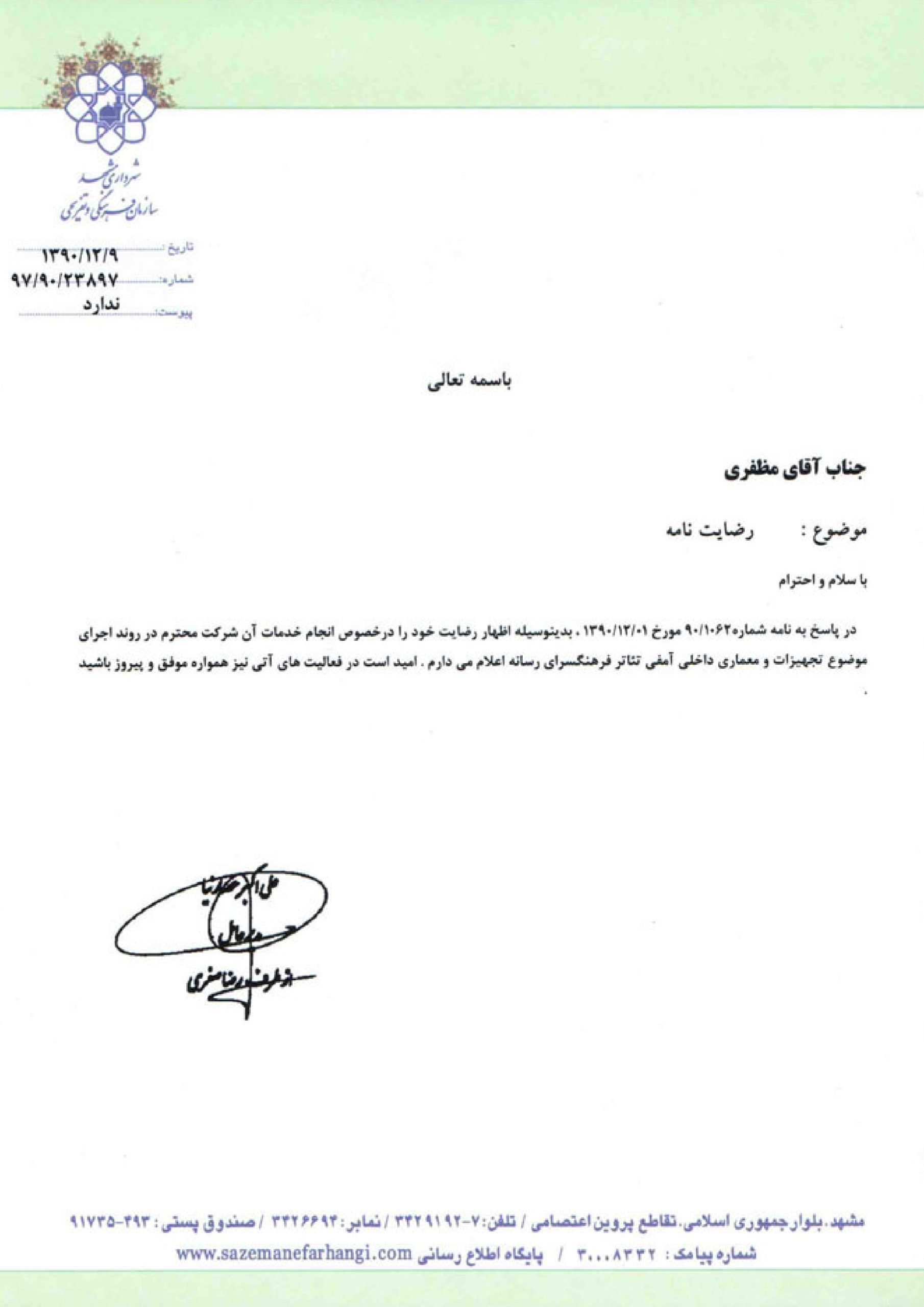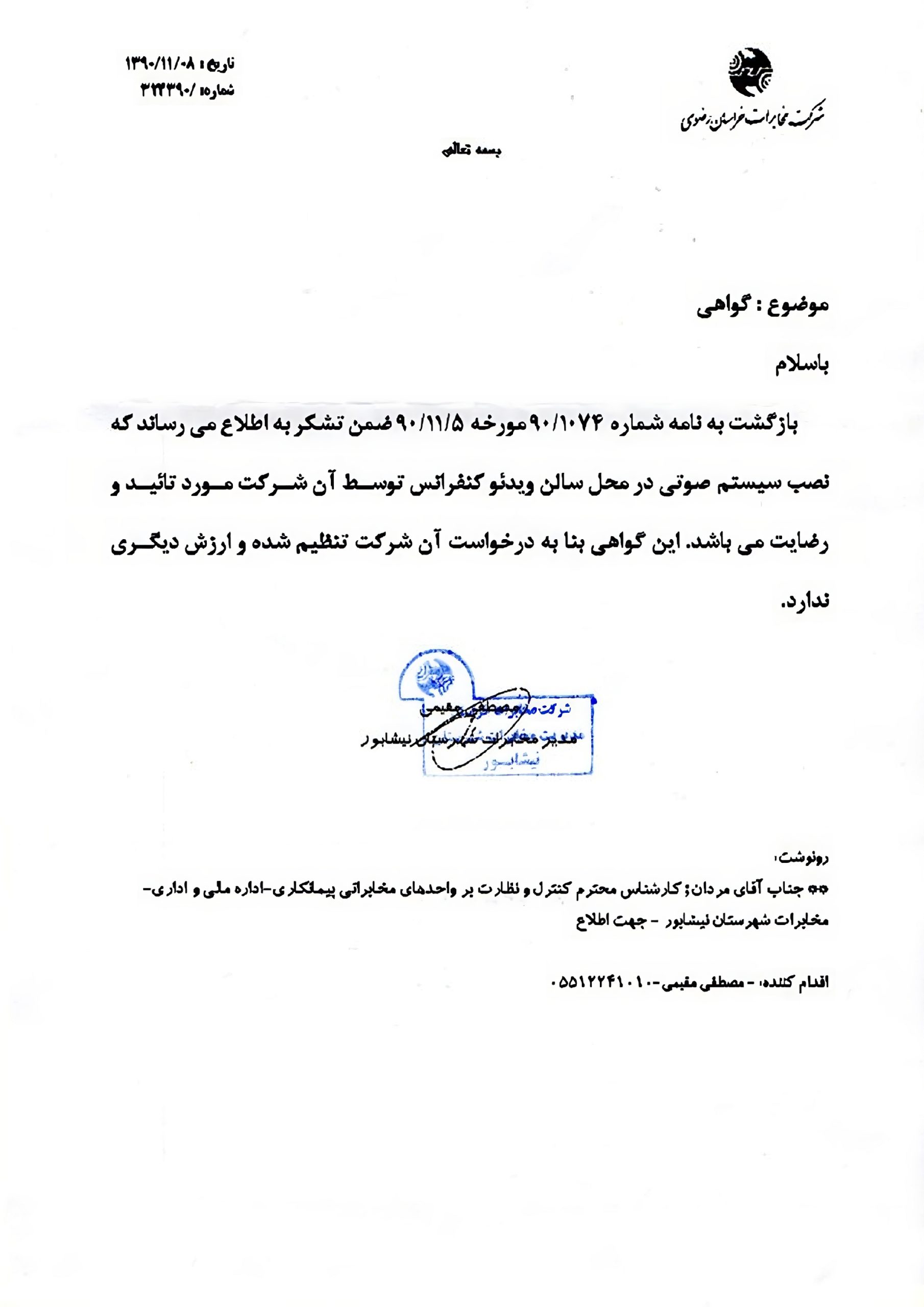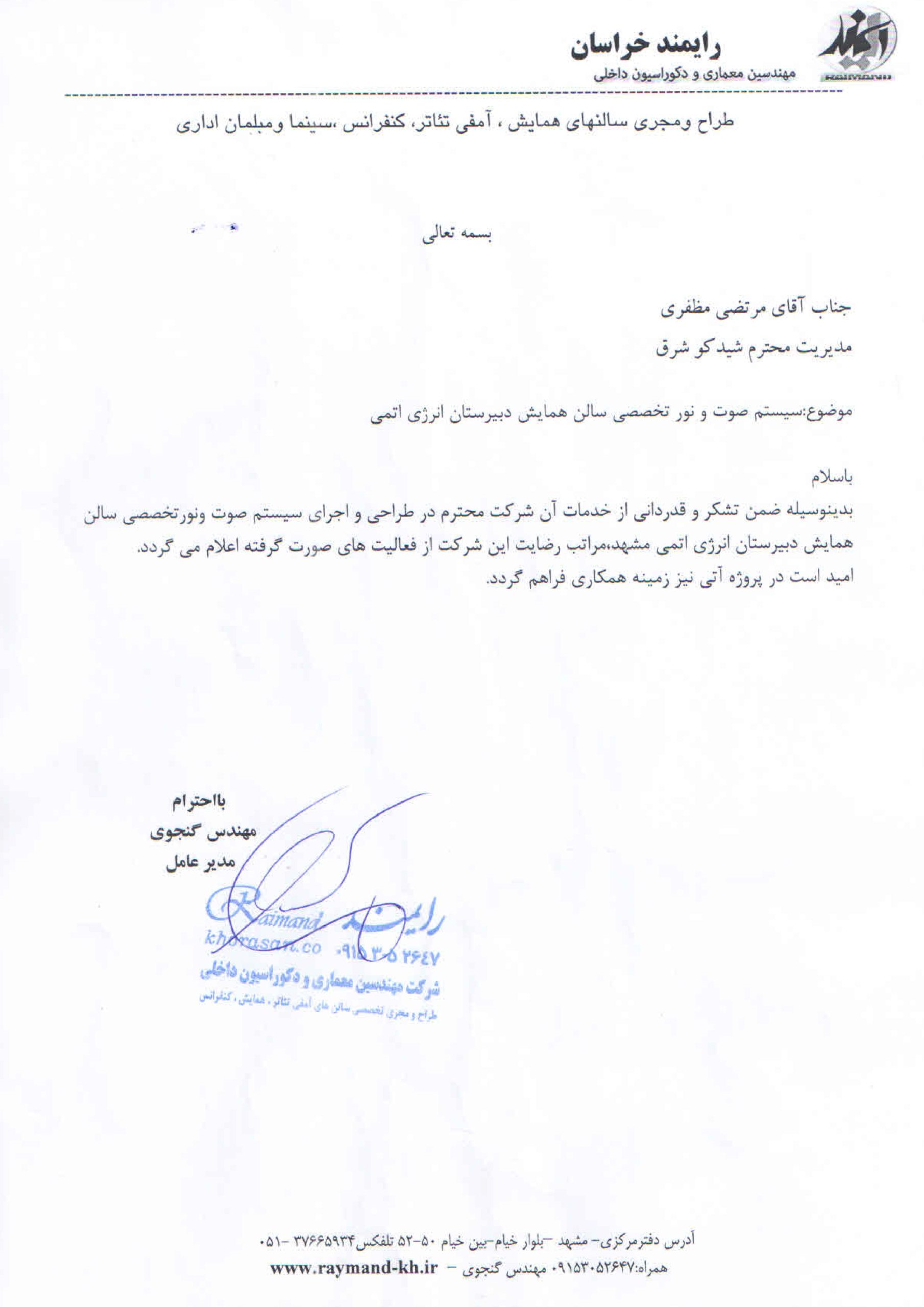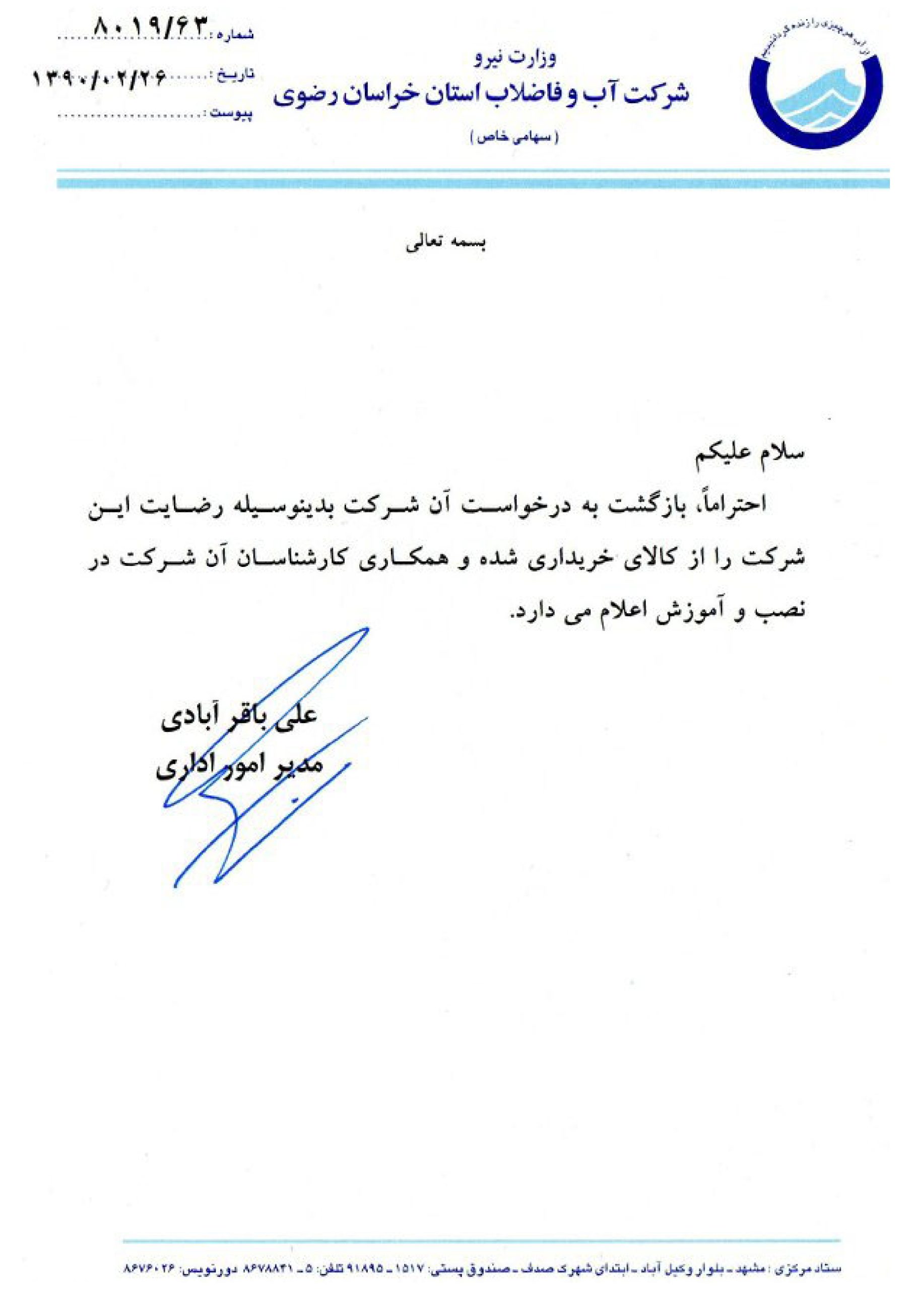 برخی از رضایت نامه ها هر پروژه، قصهای از همکاری و اعتماد است.ما به پشتوانه رضایت مشتریان، روشنتر از همیشه میتابیم.اینها صدای تأیید شماست؛ روشن، شفاف و افتخارآفرین. بهترین ها را از ما بخواهید برند های شیدکو شرق